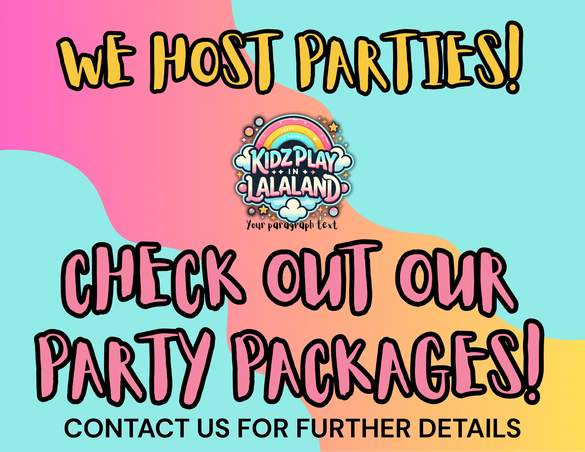 Once your scheduled party time is over, you must vacate both the party rooms and playground.